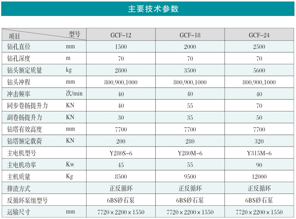 GCF型系列沖擊反循環(huán)工程鉆機(jī)為我公司研制的基礎(chǔ)工程施工設(shè)備,適用于土層,巖層,尤其適用于卵礫石、膠結(jié)卵礫石等復(fù)雜地層的基礎(chǔ)施工,廣泛應(yīng)用于橋梁基礎(chǔ)、電站基礎(chǔ)、地下連續(xù)墻、水井鉆鑿等工程施工。該鉆機(jī)技術(shù)先進(jìn),性能可靠,價(jià)格適中,為同類鉆機(jī)之精品。